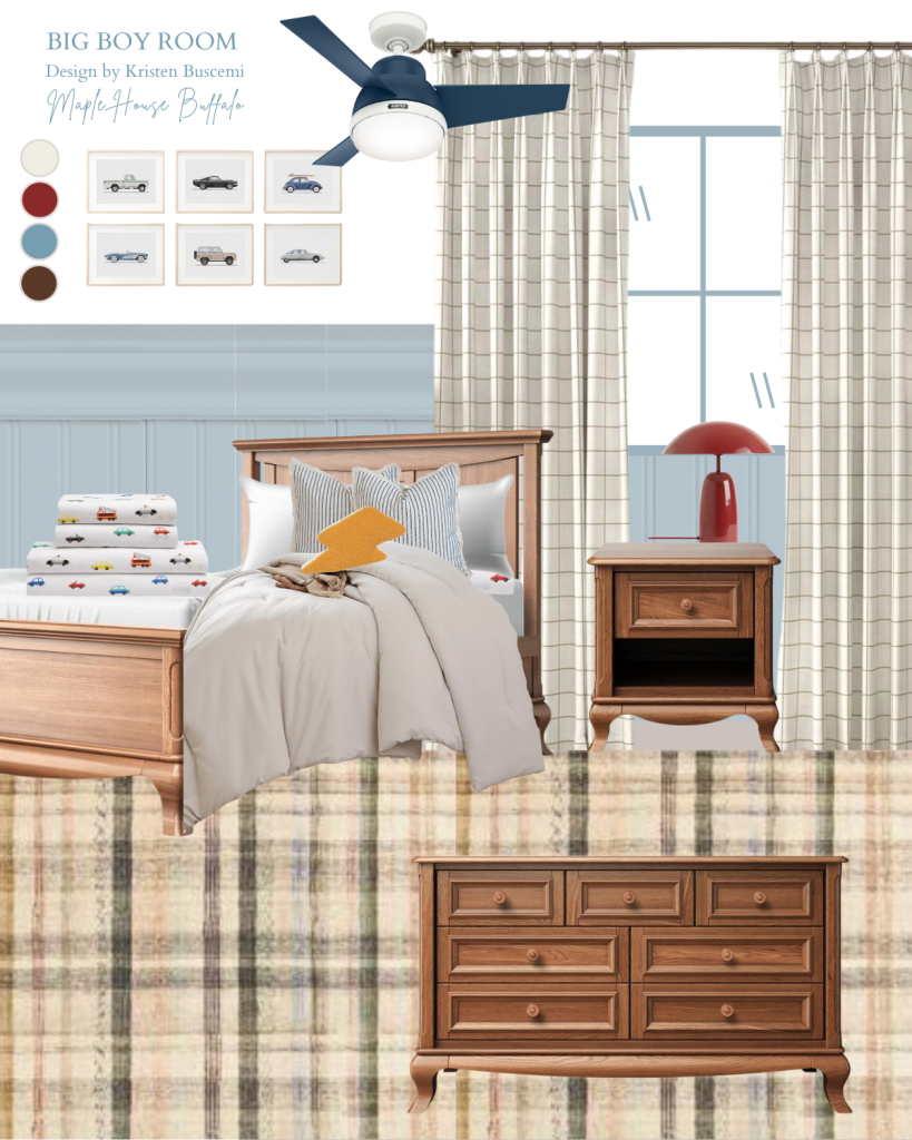 Our oldest son, Matteo, requested a blue and red car theme for his big-boy room glow up – and so began my research into the perfect red and blue paint colors!