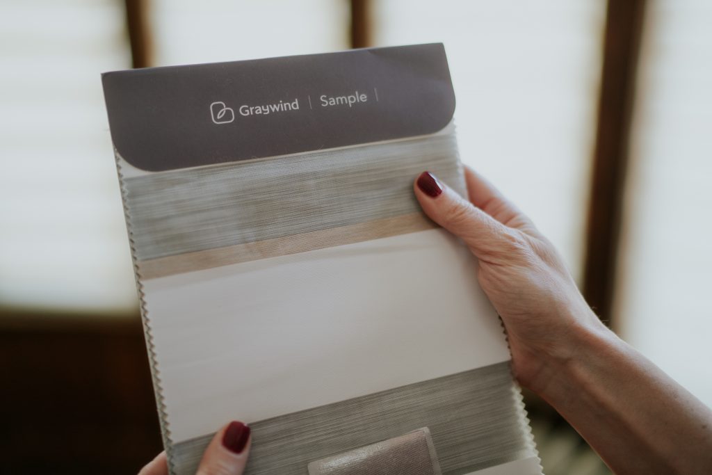 Before committing to the blinds, I ordered Graywind’s fabric swatch booklet so my husband, Andy, and I could select the right color and get a sense of the fabric quality. We were impressed with both the color options and material, and decided on the shade, “wool-like beige.”
